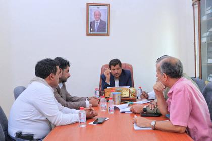 أمين عام محلي المهرة يناقش سير العمل في مشروع مياه مناطق الفيدمي ويروب